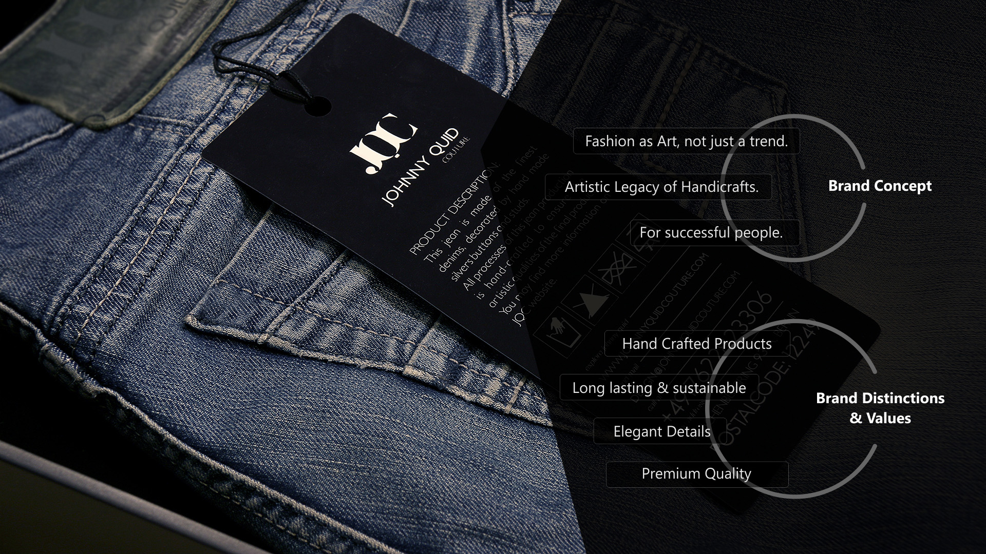 The tagline refers to precisely and passionately crafted style of both the "Products (as fashion)" and "Persona (as a successful person)".
