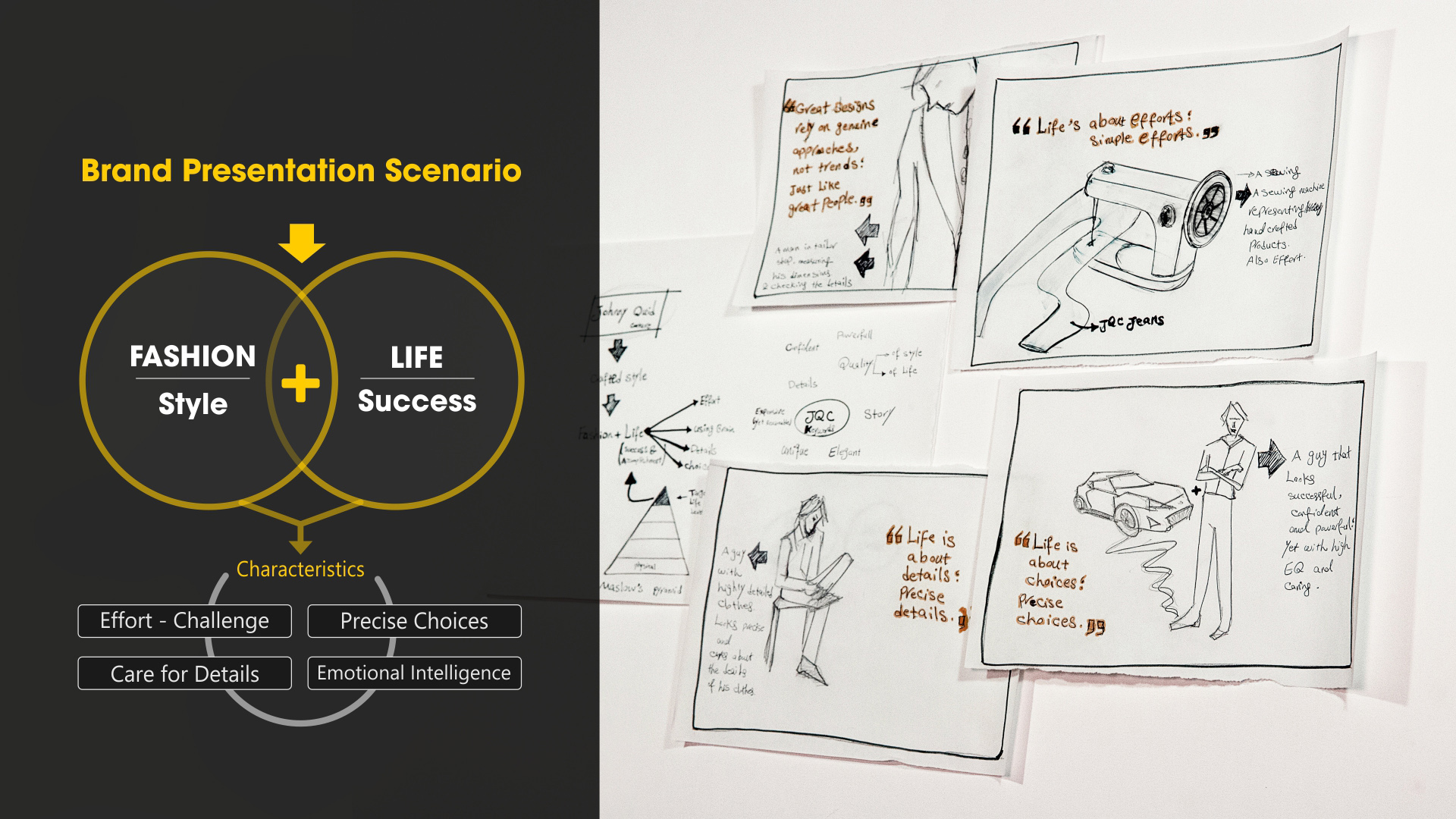 The advertising campaign communicates the Brand Story and Presentation Approach: Common characteristics of "Success in life" and "High-End fashion".