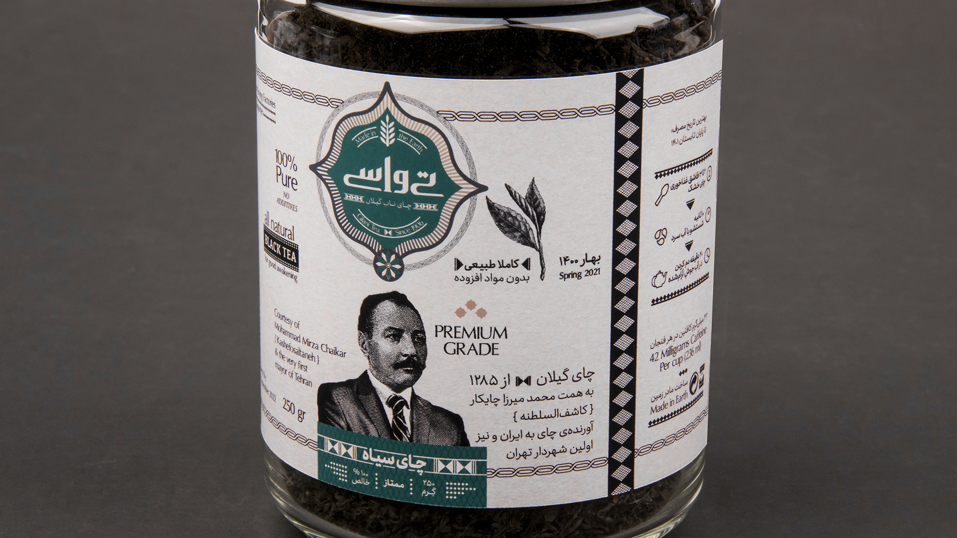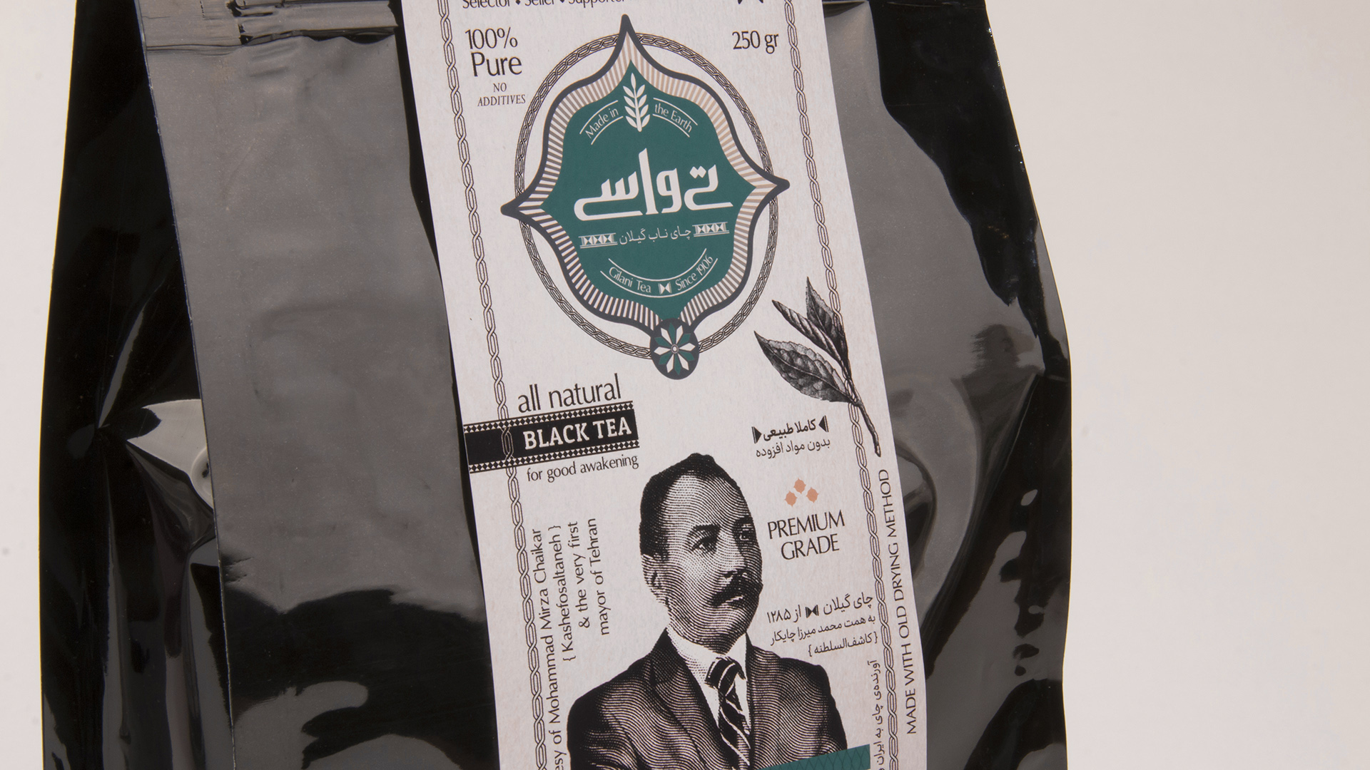 This brand and design is also inspired by Mohammad Mirza Chaikar (Kashefosaltaneh) who brought Chai to Iran for the first time in 1906.